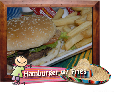 #1 QUESADILLITAS #2 FLAUTITASBeef or chicken #3 MINI CHICKEN BURRITO #4 PAPAS BANDIDAS #5 MINI BEANS & CHEESE BURRITO #6 HAMBURGER W/FRIES